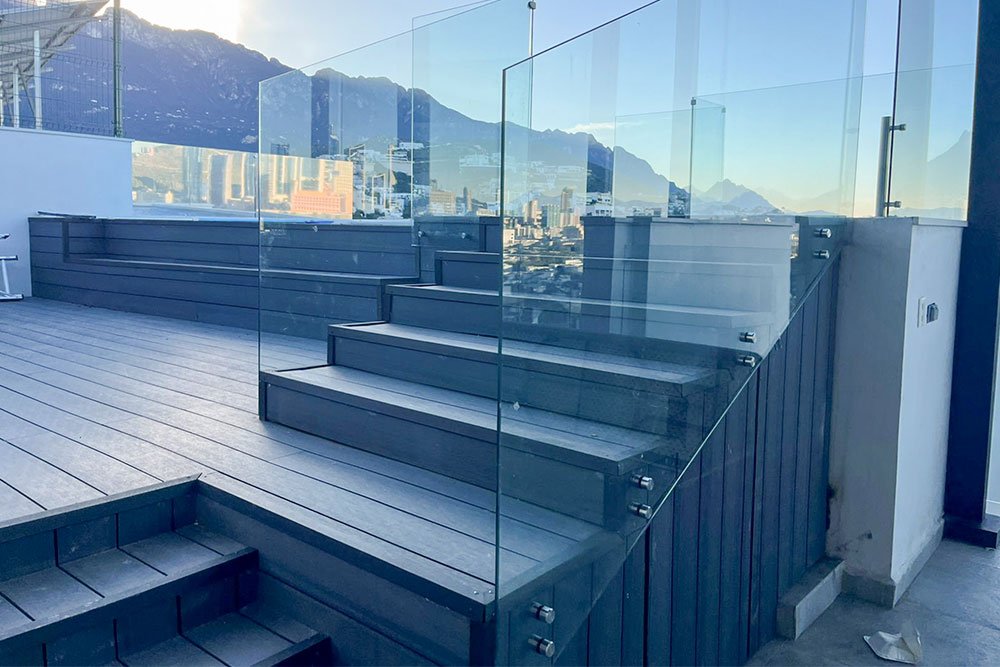 Seguridad y diseño en escaleras, balcones o terrazas. Fabricados en cristal templado con herrajes de alta calidad.